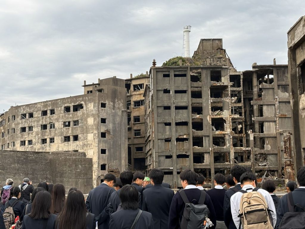 2日目は体験学習として軍艦島をはじめ、班ごとに見学・体験活動を行い、歴史や産業について理解を深めました。その後はハウステンボスを訪れ、異国情緒あふれる街並みの中で仲間との交流を楽しみました。